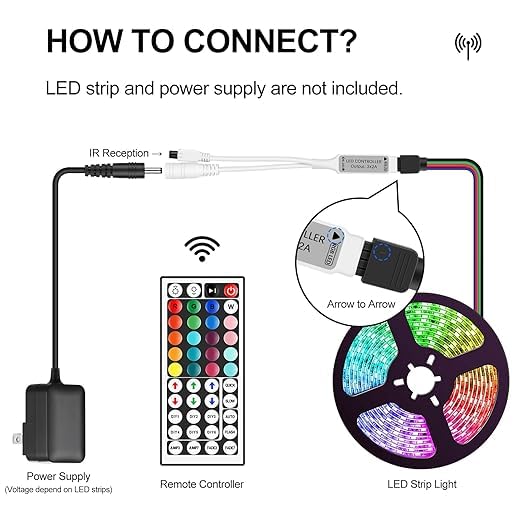 - Package Contain: 5 Meter 5050 Strip Light with 44 Ir remote 300 Led, User manual and Remote Control, RGB TV Backlight, USB Cable Fasteners