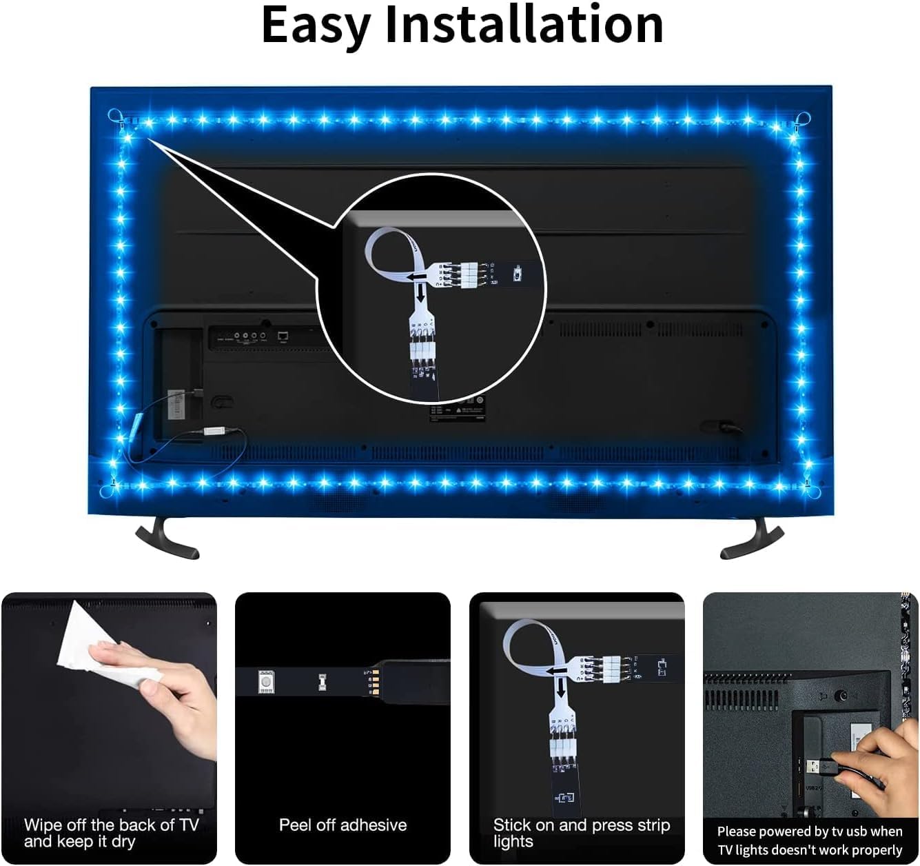 - 【Easy installation 】In order to ensure the perfect lighting effect, we recommend that you test the product connection before decorating and notice the alignment of arrows(The instructions are marked). Dry, smooth and clean surface suits the back-adhesive of led light strip. The led strip lights are easy to install, just tear and paste them on your bedroom walls. Then enjoy it!